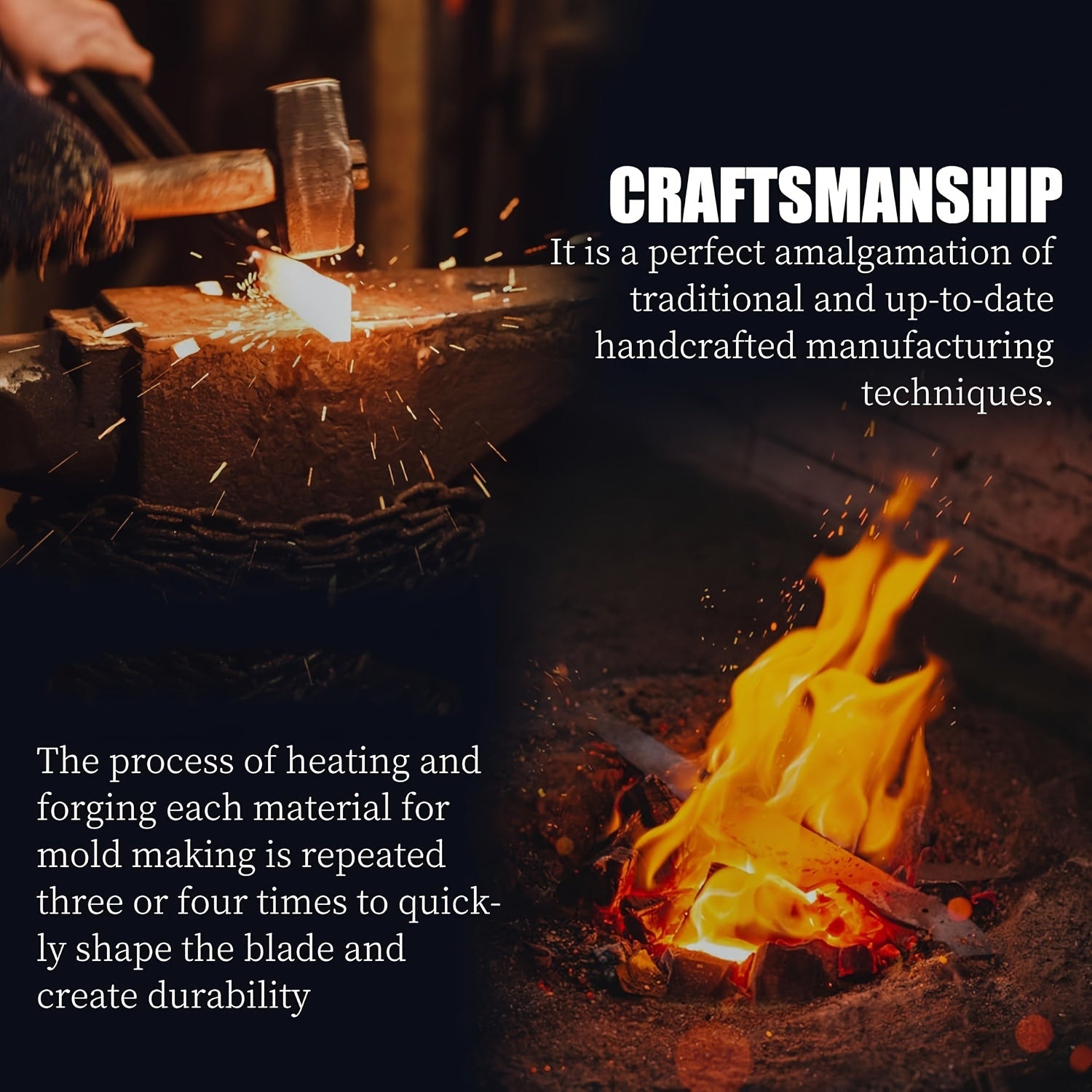 - Finition de la Lame (Esthétique) : Style Kurochi (Apparence brute de forge).Détail : L'aspect texturé/martelé confère un style rustique et artisanal, et contribue à réduire l'adhérence des aliments sur la lame.